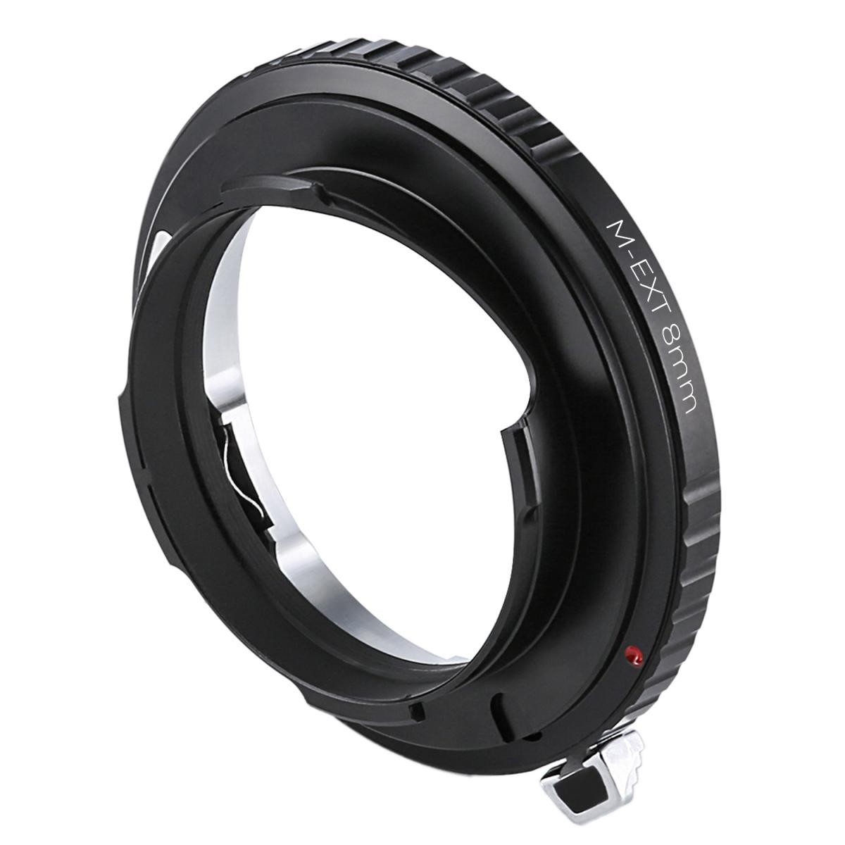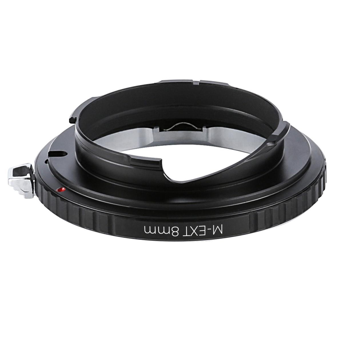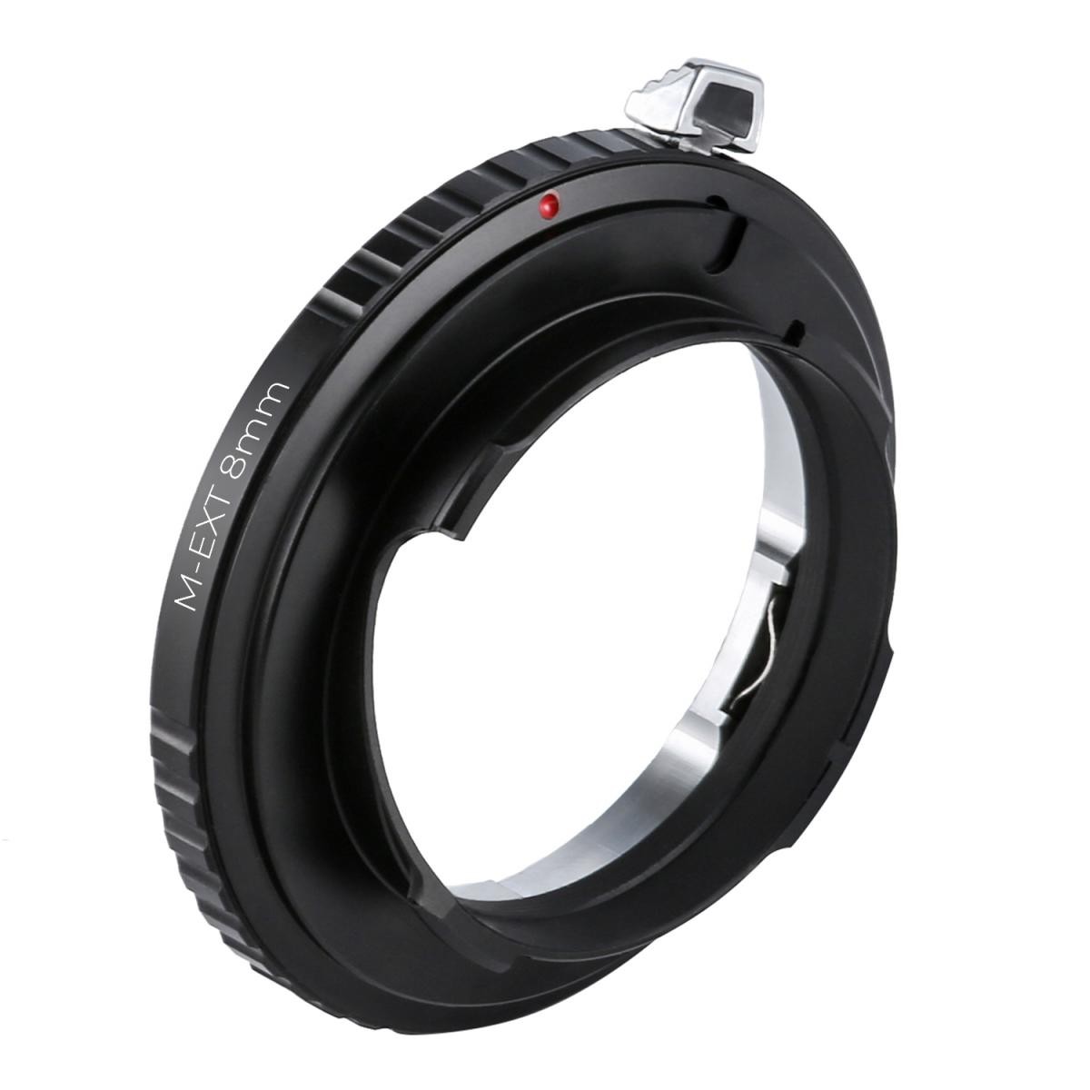 Adapter K&F Leica M Lenses to Leica M Mount M-EXT 8 mm omogoča natančno namestitev objektivov Leica M z popolnim ročnim nadzorom, vključno z ročnim ostrenjem, prednostjo zaslonke in neskončnim ostrenjem. Izdelan je iz trpežne bakreno-aluminijeve zlitine, ima gladko bajonetno povezavo, poravnavo z rdečo piko in protirefleksno notranjo oblogo, ki preprečuje razpršeno svetlobo.