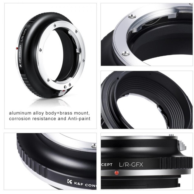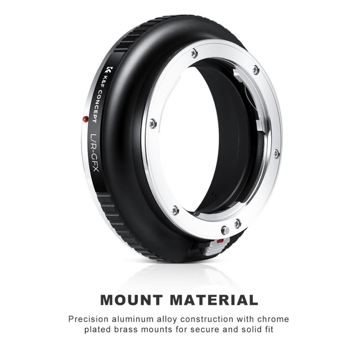 Adapter K&F Leica R Lenses to Fuji GFX Mount Camera Adapter ponuja natančno in zanesljivo rešitev za uporabo objektivov Leica R serije na srednjeformatnih brezzrcalnih fotoaparatih Fuji GFX. Adapter je izdelan iz visokokakovostne kovinske konstrukcije in zagotavlja varno in stabilno povezavo, hkrati pa ohranja optično integriteto vaših vintage objektivov Leica. Podpira popolnoma ročno ostrenje in ročno nadzorovanje zaslonke, kar ga naredi idealnega za fotografe, ki cenijo taktilni nadzor in izrazito upodabljanje optike Leica R.