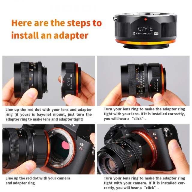 Ročni adapter za ostrenje K&F Concept C/Y-NEX je združljiv z objektivi Contax / Yashica (C/Y) za kamere z NEX E-Mount.
