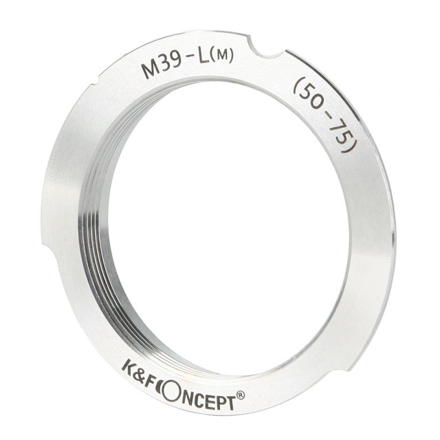 Adapter K&F M39 50 mm/75 mm za Leica M omogoča uporabo objektivov z M39 -priključkom na fotoaparatih serije Leica M. Izdelan je iz medenine in aluminija ter zagotavlja stabilno, natančno in popolnoma ročno upravljanje s podporo za neskončno ostrenje.