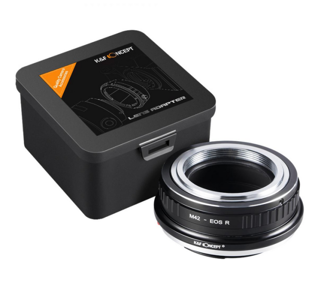 Adapter K&F M42 za bajonet Canon EOS R omogoča nemoteno uporabo objektivov M42 s fotoaparati Canon EOS R. Adapter je izdelan iz visokokakovostne bakrove in aluminijaste zlitine ter je zasnovan natančno in vzdržljivo ter zagotavlja zanesljivo povezavo med objektivom in ohišjem fotoaparata.