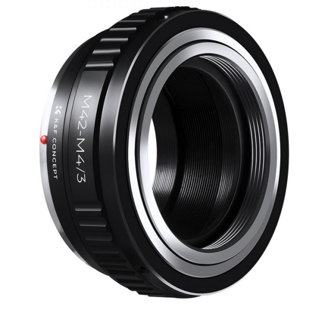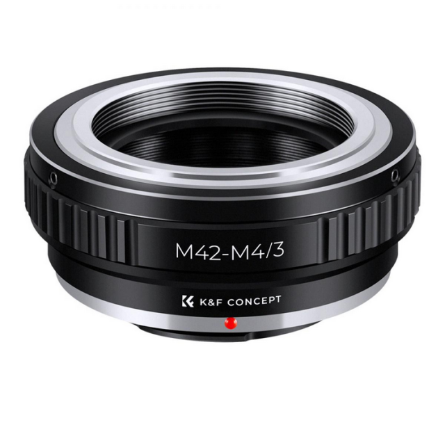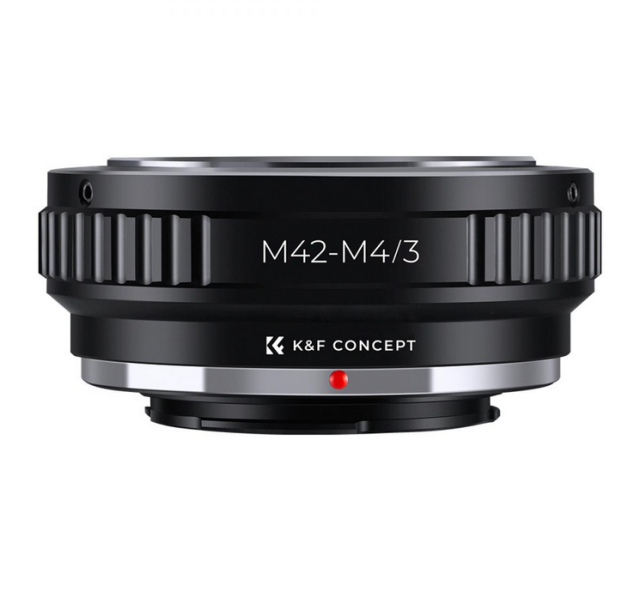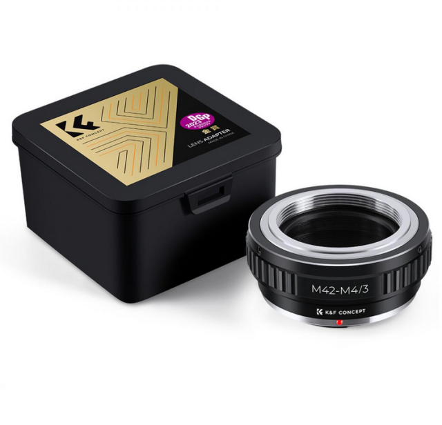 Adapter K&F M42 Lenses to M43 MFT Mount Camera Adapter omogoča uporabo objektivov z bajonetom M42 na ohišjih fotoaparatov z bajonetom Micro 4/3 (MFT). Adapter je združljiv s številnimi fotoaparati Micro Four Thirds proizvajalcev Panasonic, Olympus, JVC, DJI, Kodak in Blackmagic. Izdelan je iz trpežne medenine in aluminija ter zagotavlja stabilno in natančno ročno upravljanje s podporo za ostrenje v neskončnost. Za težke objektive srednjega formata je priporočljivo uporabiti teleobjektivni nosilec in stativ za uravnoteženo fotografiranje.