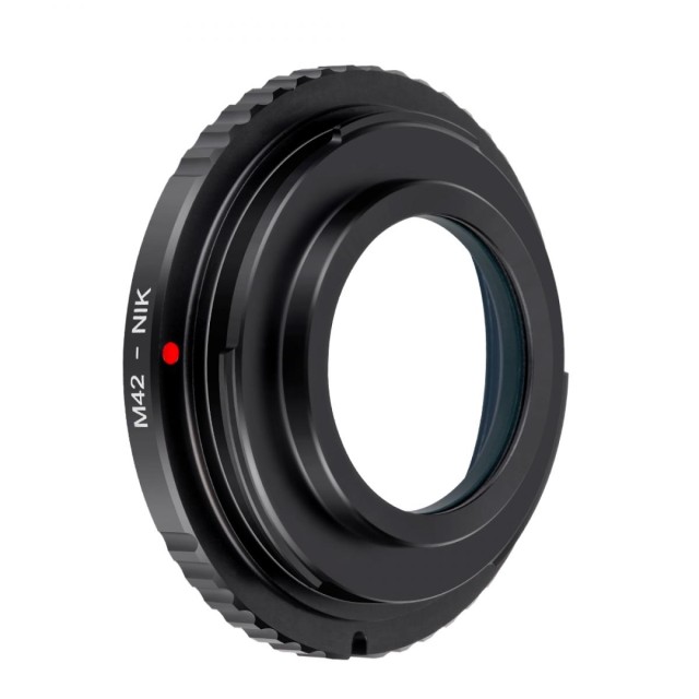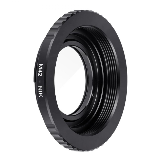 K&F M42 do Nikon objektivni adapter z optičnim steklom omogoča uporabo objektivov z M42 vpetjem na Nikon DSLR fotoaparatih, ima trpežno konstrukcijo iz medenine in aluminija, natančno ročno upravljanje in vgrajeno optično steklo za neskončno ostrenje.