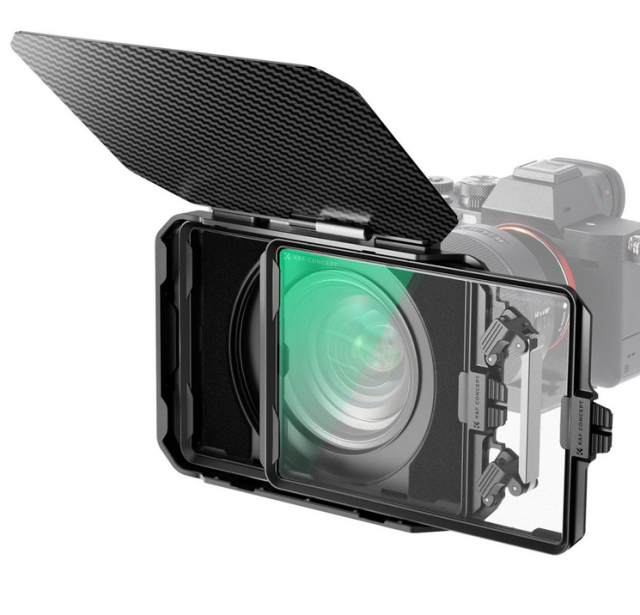 K&F Matte Box Kit je profesionalna dodatna oprema, zasnovana za fotografe in videografe, ki zahtevajo visoko zmogljivost in prilagodljivost. Izdelan iz lahkih ogljikovih vlaken z elegantnim matiranim zaključkom zagotavlja, da je razpršena svetloba blokirana, kar omogoča jasne in kontrastne slike. Njegova izjemno tanka 34-milimetrska zasnova preprečuje vinjetiranje, tudi pri širokokotnih objektivih, kratkih kot 16 mm.