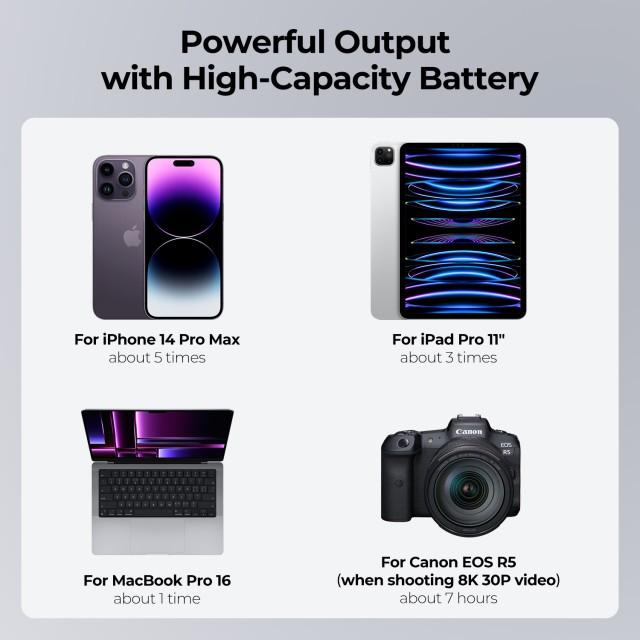 * 【Lahko prenašanje】99Wh je največja dovoljena moč na letalih in je kot nalašč za večino naprav V-mount, velikosti dlani, enostavno za prenašanje