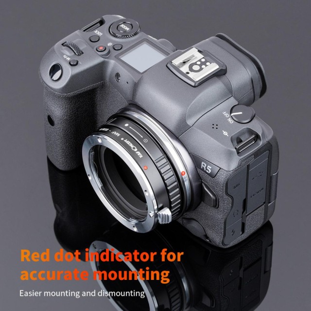 Adapter za objektiv K&F Minolta A / Sony A za Canon EOS R omogoča uporabo objektivov Minolta A in Sony A-mount na brezzrcalnih fotoaparatih Canon EOS R. Izdelan je iz trpežne medenine in aluminija, omogoča natančno ročno upravljanje in podpira neskončno ostrenje.