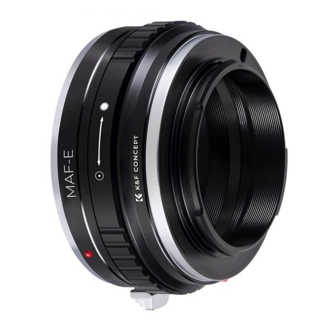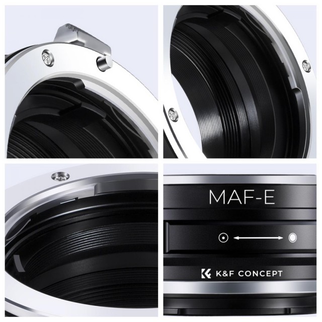 Adapter K&F Minolta A / Sony A za Sony E-Mount omogoča uporabo objektivov Minolta AF in Sony Alpha A mount na brezzrcalnih fotoaparatih Sony E-mount. Ima kovinsko konstrukcijo iz eloksiranega aluminija, ročno upravljanje in podporo za neskončno ostrenje.