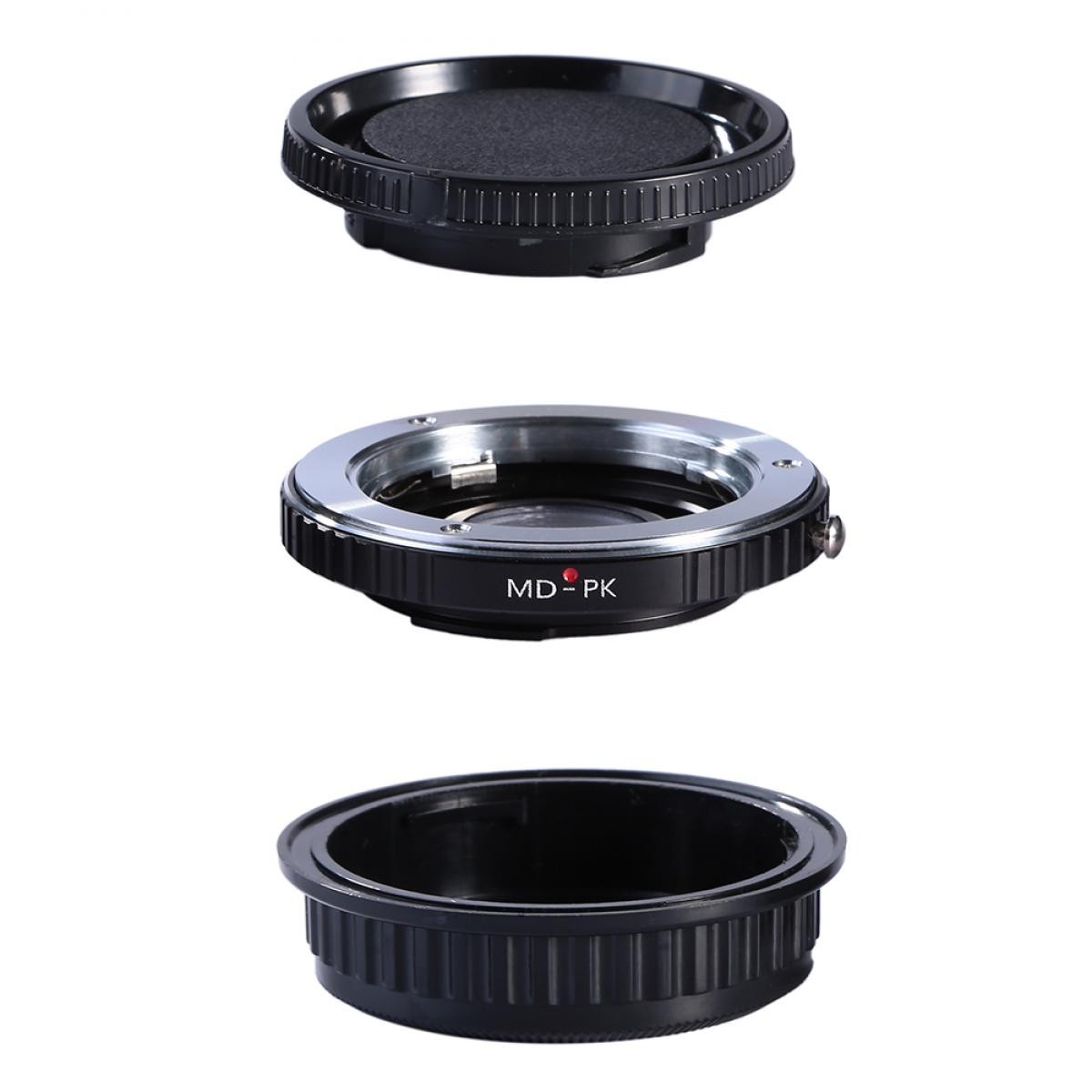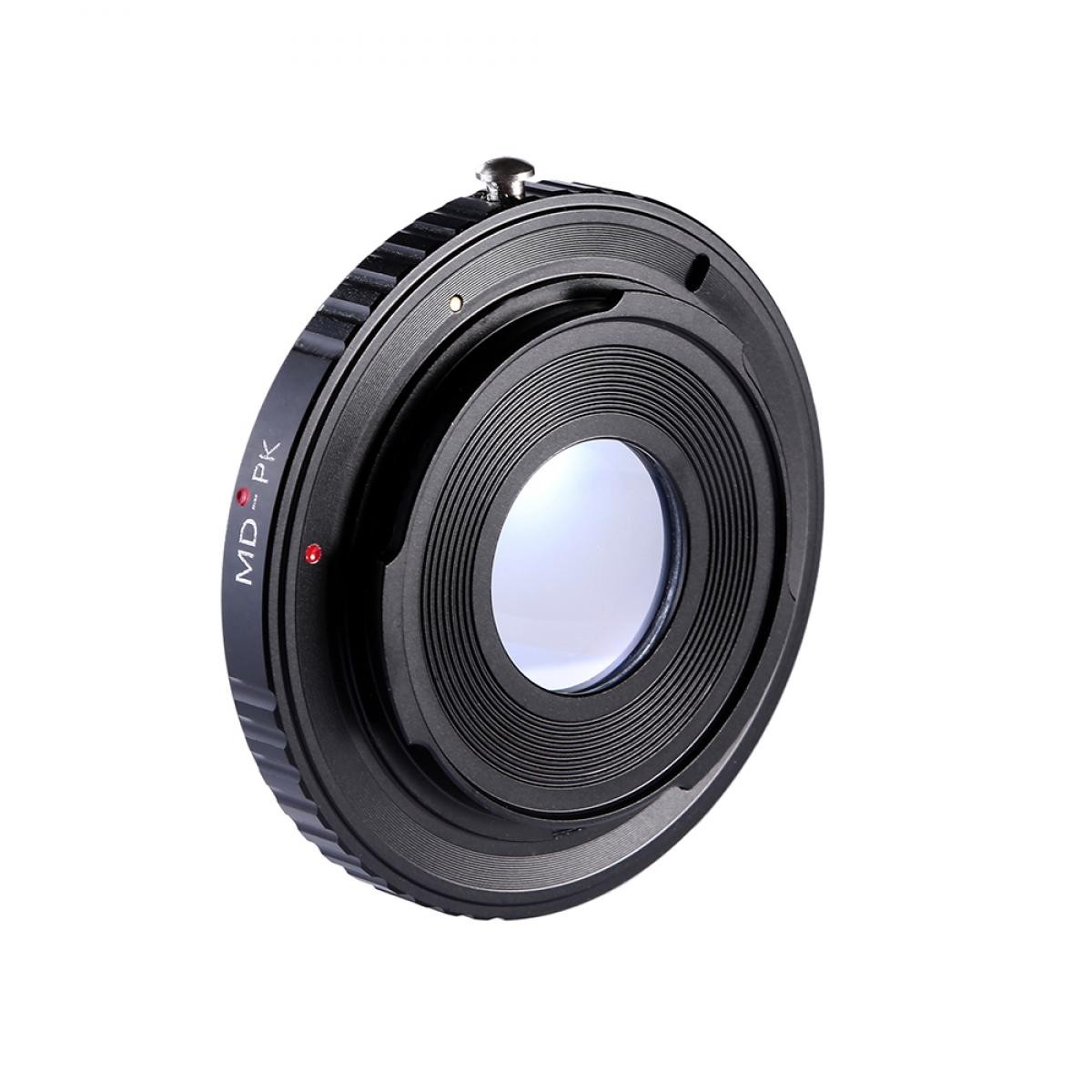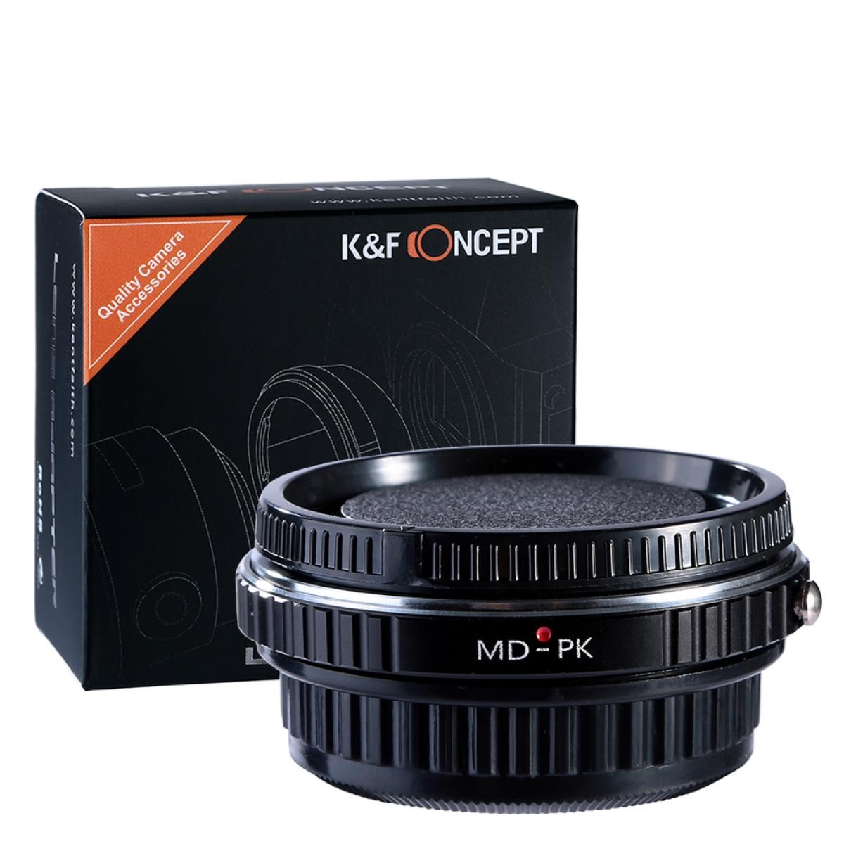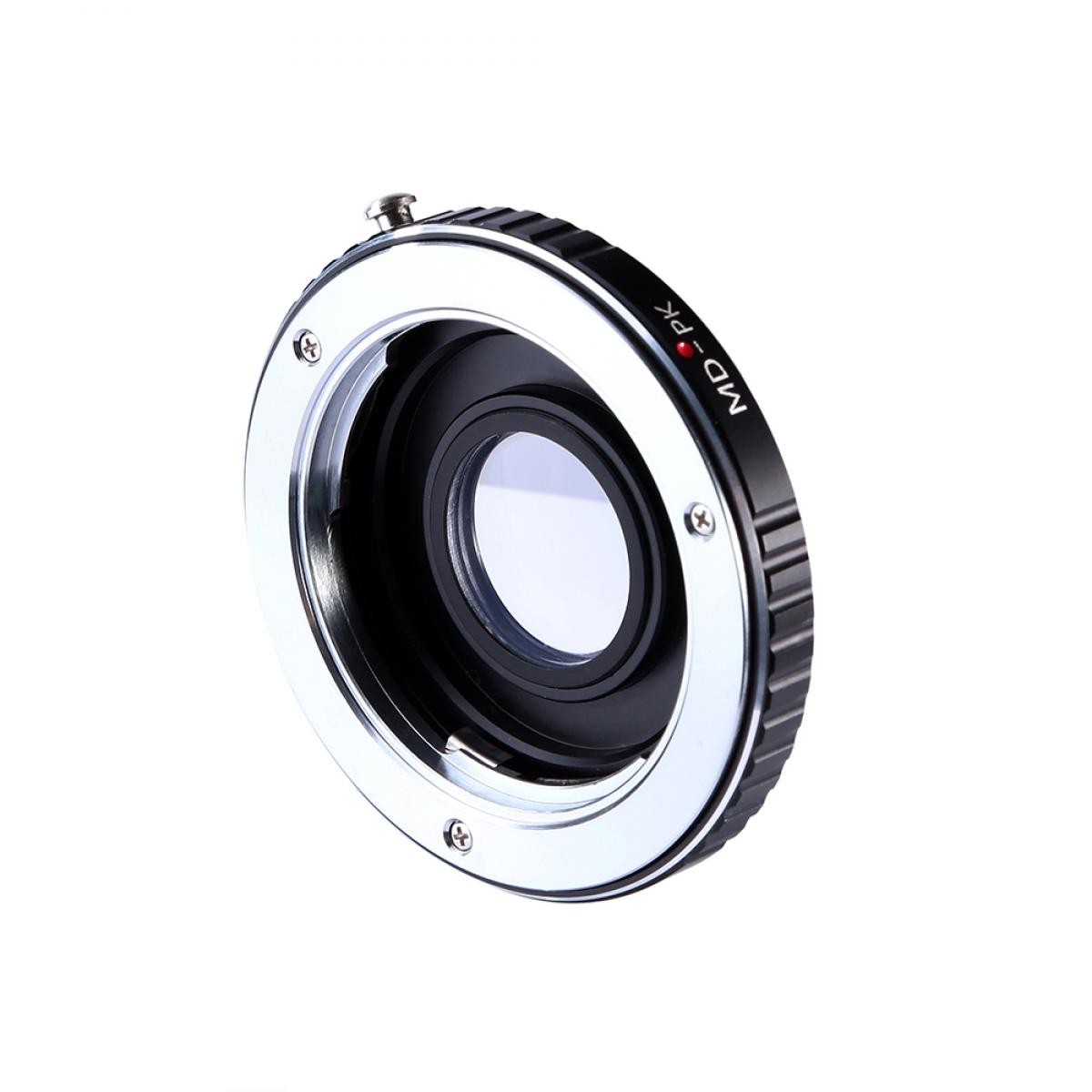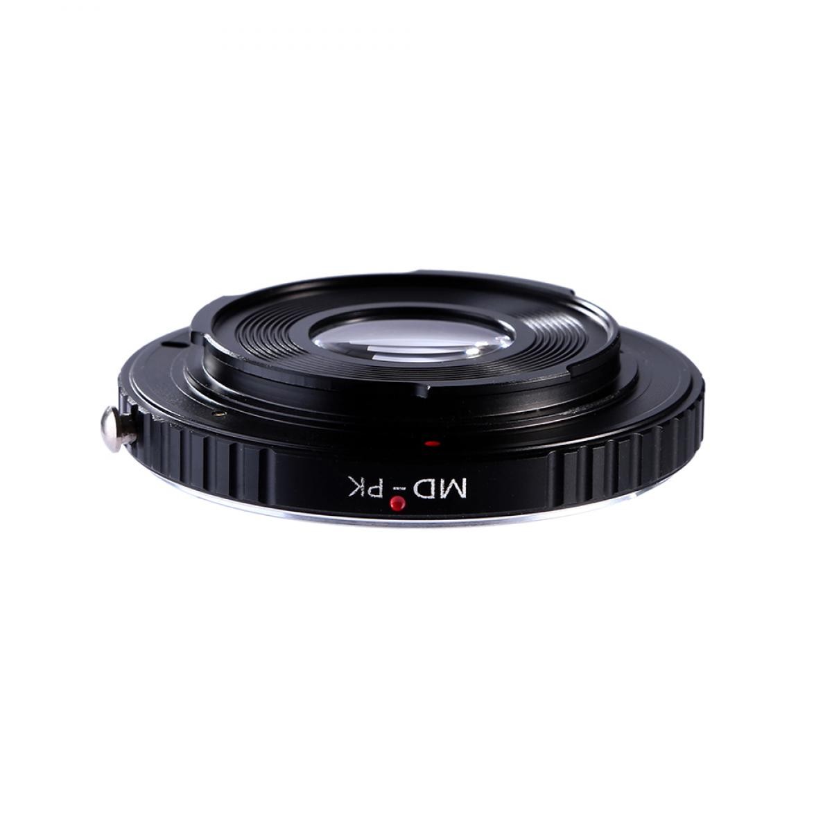 K&F Minolta MD–Pentax K objektivni adapter z optičnim steklom omogoča namestitev objektivov Minolta MD/MC na DSLR fotoaparate Pentax K-mount, ponuja trpežno konstrukcijo in podporo za neskončno ostrenje.