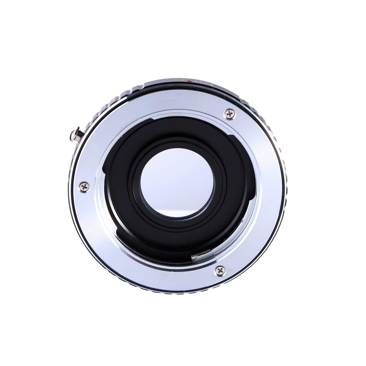 Adapter K&F Minolta MD za objektiv na Pentax K fotoaparat z optičnim steklom omogoča fotografom uporabo klasičnih objektivov Minolta MD/MC na široki paleti DSLR ohišij Pentax K. Adapter je izdelan iz trpežne kombinacije medenine in aluminija, kar zagotavlja stabilno in natančno prileganje med objektivom in fotoaparatom. Vgrajeno optično steklo pomaga ohranjati neskončno ostrenje, kar omogoča ostre rezultate tudi na velike razdalje. Ta popolnoma ročni adapter ne vsebuje elektronskih kontaktov, zato je treba nastavitev zaslonke in ostrenje nastaviti neposredno na objektivu. Je združljiv z mnogimi fotoaparati Pentax K, kot so serije K100D, K10D, K20D, K-7, K-x, K-r, K-5, K-3, K-1, K-70, KP in druge. Pri uporabi težkih objektivov, zlasti srednjeformatnih, priporočamo uporabo teleobjektivnega nosilca in stativa za boljšo ravnotežje in stabilnost med fotografiranjem.