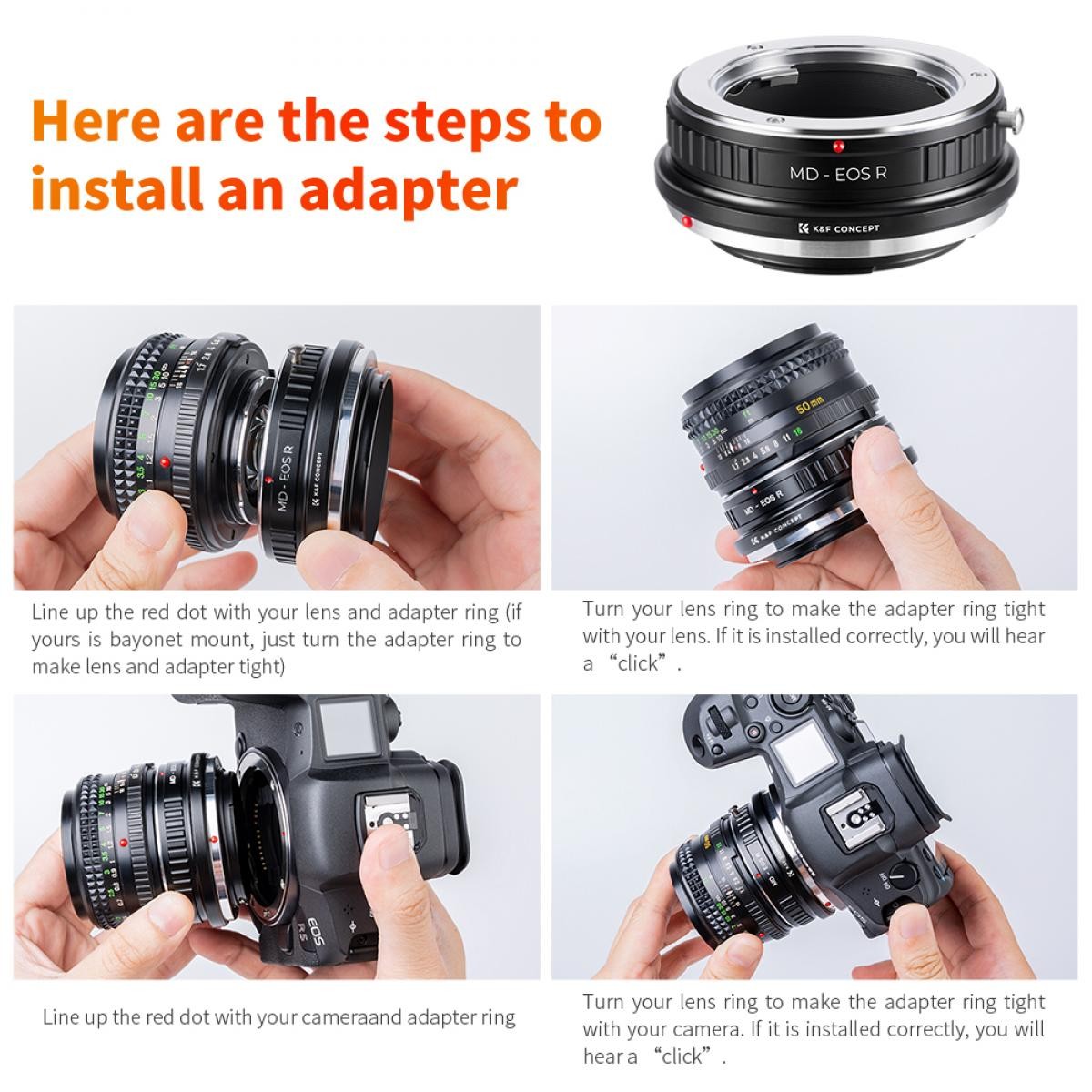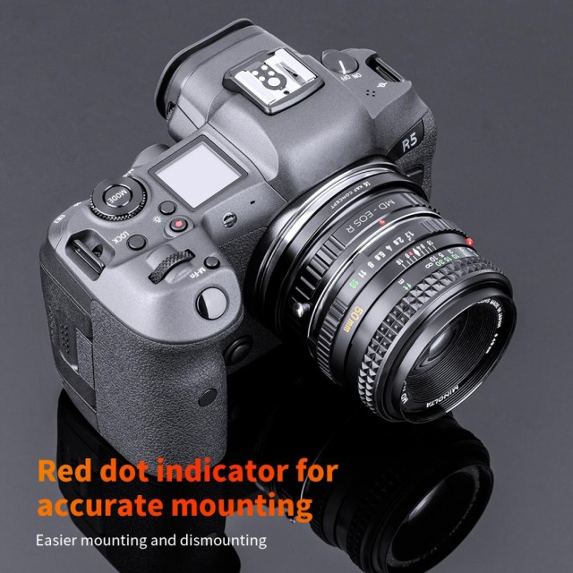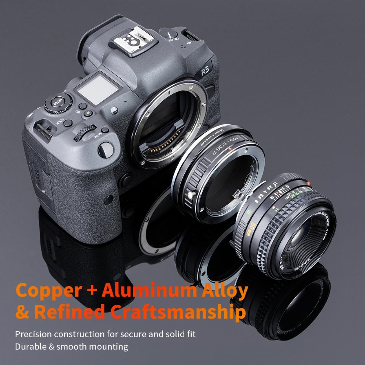 Adapter za objektiv K&F Minolta MD/MC za Canon EOS R omogoča namestitev objektivov Minolta MD in MC z ročnim ostrenjem na fotoaparate Canon EOS serije R. Odlikuje ga trpežna konstrukcija iz medenine in aluminija, gladko ročno upravljanje in popolna podpora za neskončno ostrenje.