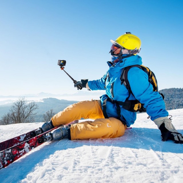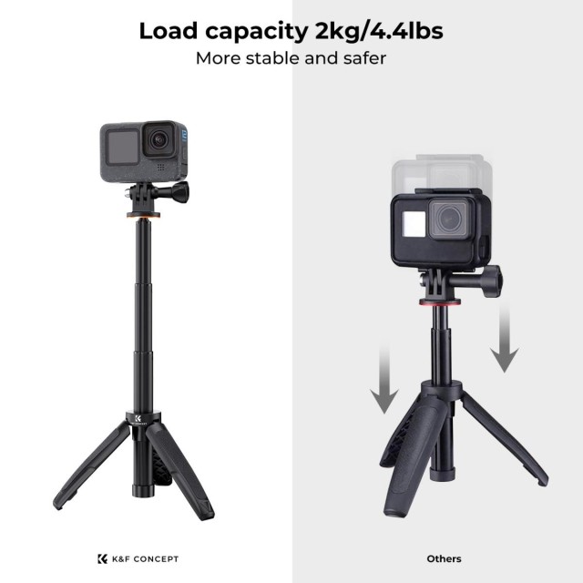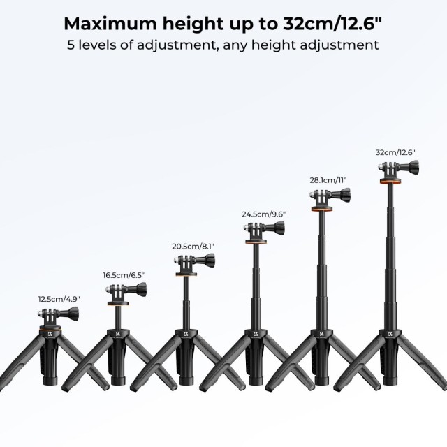 Nosilci za akcijske kamere Stojalo za namizno palico za selfije (majhna velikost) za Gopro, Action in Insta Black Orange. Majhen stativ za telefon ima razširjeno fiksno strukturo in nedrseč silikon. Spremenjena cev ima vgrajen gumijast obroč za blaženje udarcev, zaradi česar je celotna raztegljiva cev stabilnejša in močnejša. blazinica na dnu za stabilnejšo oporo.