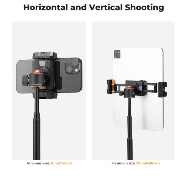 K&F MS20 je vsestranski nosilec za telefon in tablični računalnik 2-v-1, zasnovan za udobje in prilagodljivost. Omogoča varno namestitev mobilnega telefona in tabličnega računalnika hkrati, kar olajša prilagajanje nastavitev z enim samim klikom in potegom. Nosilec ima vmesnik hladne čevlje za pritrditev različnih fotografskih dodatkov, kot so mikrofoni…