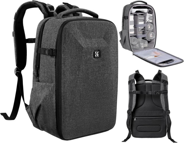 Ta večnamenski nahrbtnik za fotoaparat s trdo lupino je zasnovan za različne znamke fotoaparatov DSLR/SLR/brezzrcalnih fotoaparatov. Odstranljivi modularni vložki so kot posamezni razdelilniki za različne fotoaparate, bliskavice in objektive. V zadnjem žepu je predal za prenosni računalnik, v katerega lahko namestite do 15,6-palčni prenosni računalnik. Sprednji, popolnoma odprt poklopec s trdo lupino, ki ščiti fotoaparat pred udarci in praskami. Torba za fotoaparat z dvema notranjima žepoma za dodatke za shranjevanje kablov, kartic SD in napajalnika. 1 skriti žep z zadrgo na zadnji strani za telefon, denarnico in druge manjše predmete. Držalo za stativ je opremljeno z varnim trakom na eni strani torbe. na drugi strani je 1 žep, v katerem je prostor za dežnik ali steklenico vode.