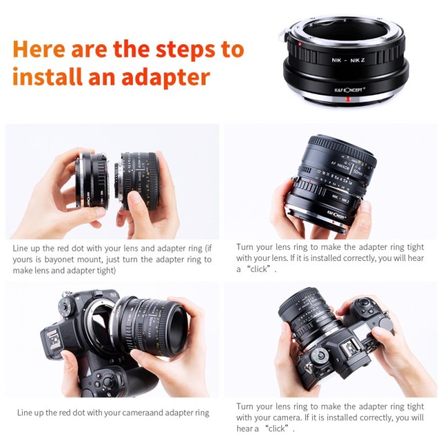 K&F Concept Nikon AI / AI-S na Nikon Z adapter omogoča namestitev Nikon F/AI/AI-S objektivov na Nikon Z-mount kamere. Izdelan je iz gladkega bakra in zagotavlja stabilno namestitev, popolnoma ročno upravljanje, neskončno ostrenje in enostavno poravnavo rdeče pike.