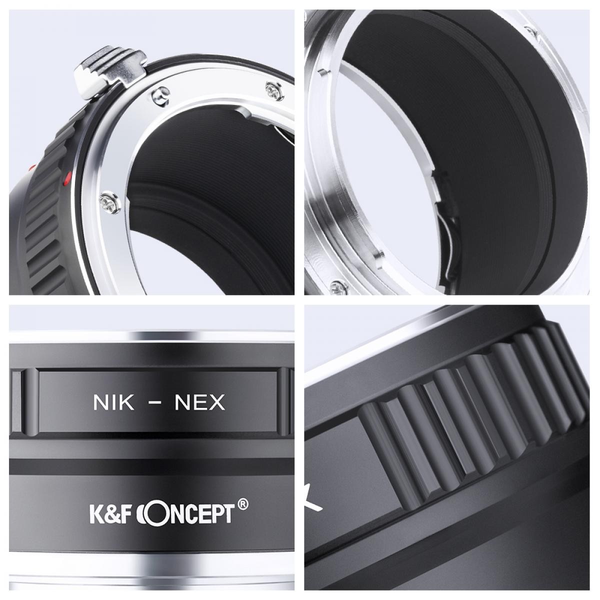 K&F Concept Nikon AI na Sony E-Mount bakreni adapter za objektiv vam omogoča namestitev Nikon F/AI objektivov na Sony E-mount brezzrcalne kamere, ponuja trpežno kovinsko konstrukcijo, ročno upravljanje in podporo za neskončno ostrenje.