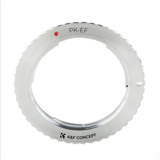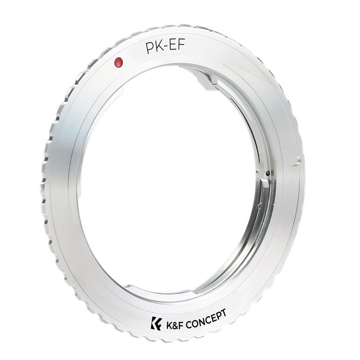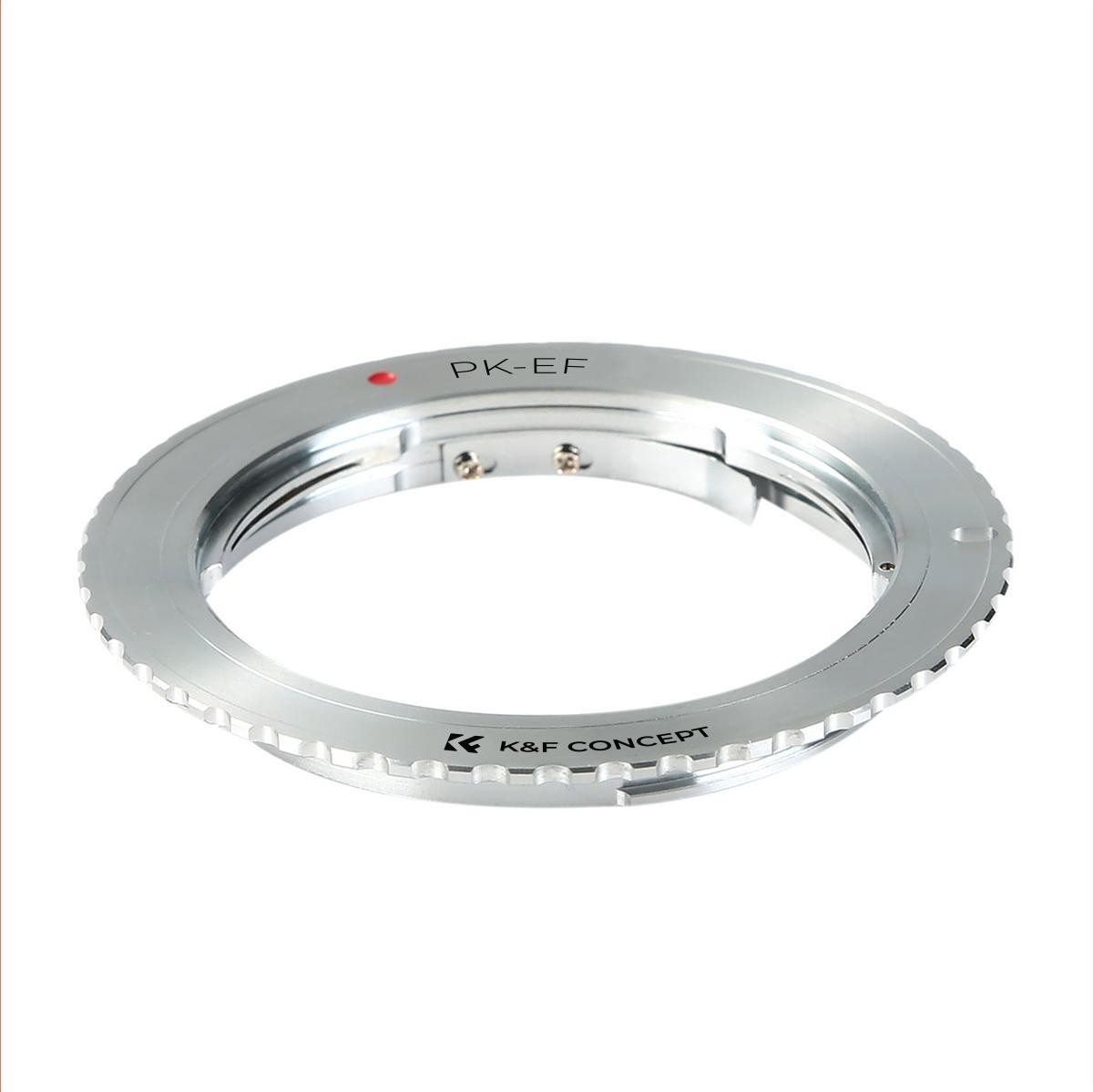 Adapter K&F Pentax K za Canon EOS omogoča uporabo objektivov Pentax K na digitalnih zrcalno-refleksnih fotoaparatih Canon EOS. Izdelan je iz trpežne medenine in aluminija, omogoča popolnoma ročno upravljanje in podpira neskončno ostrenje.