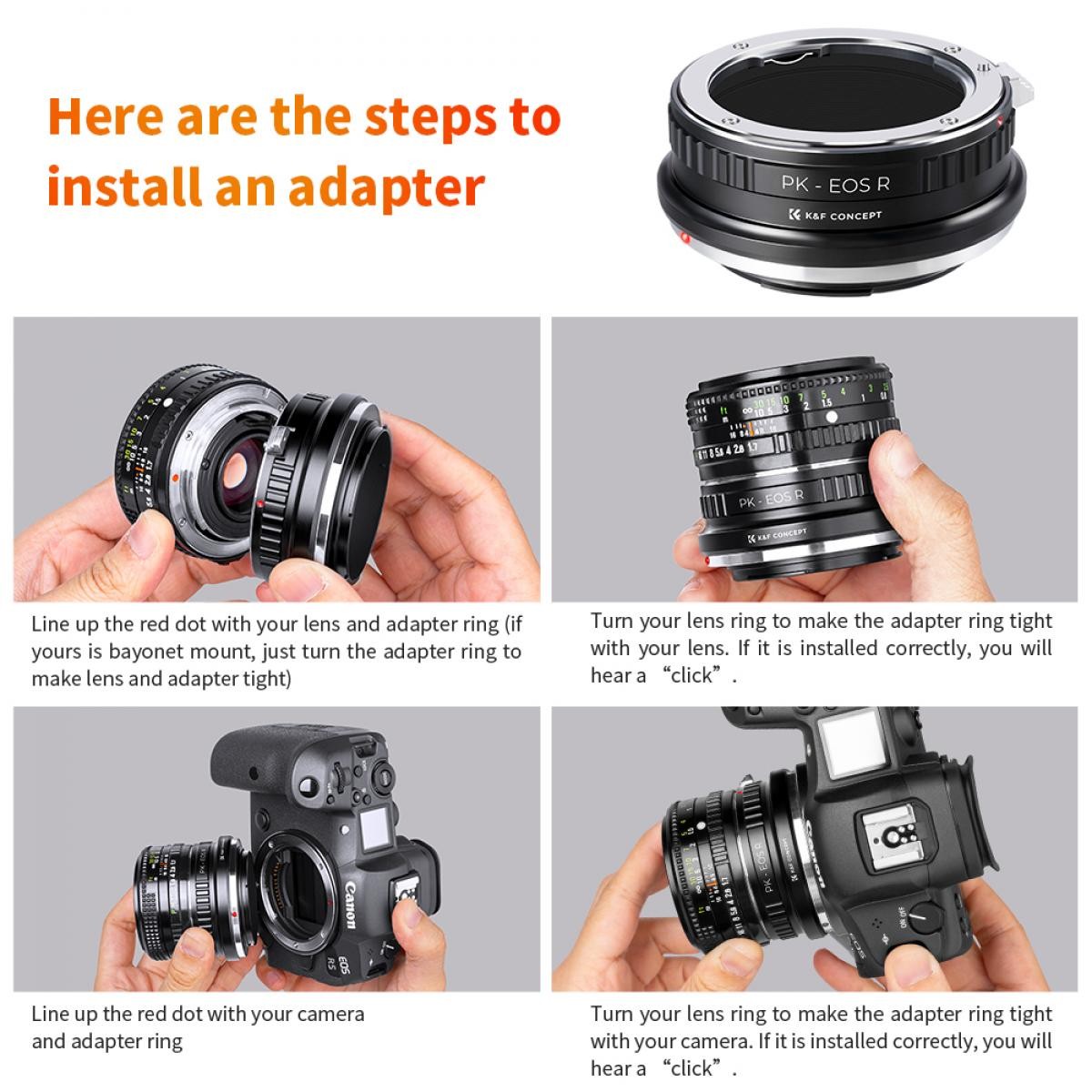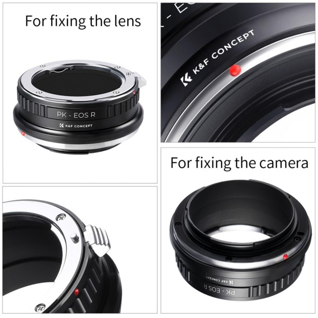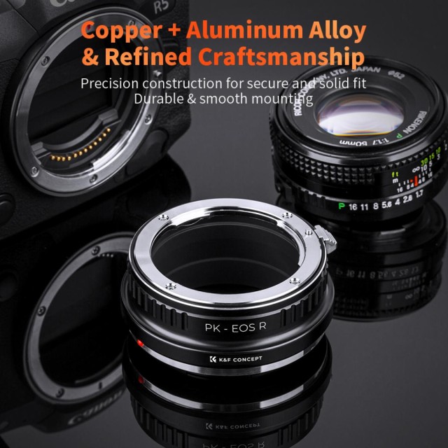 Adapter K&F Pentax K za objektive za fotoaparate Canon EOS R je namenjen fotografom, ki želijo uživati v značilnem upodabljanju objektivov Pentax K na sodobnih brezzrcalnih fotoaparatih Canon EOS R. Adapter je natančno izdelan iz visokokakovostne medenine in aluminija ter zagotavlja varno in stabilno povezavo ter dolgotrajno vzdržljivost. Ta popolnoma ročni adapter omogoča ročno ostrenje in ročno nadzorovanje zaslonke neposredno z objektiva ter podpira neskončno ostrenje za vsestransko in natančno fotografiranje. Idealno za ustvarjalno raziskovanje z obstoječimi objektivi, zagotavlja zanesljivo in visoko natančno prileganje tako za priložnostno fotografiranje kot za profesionalno delo. Za težke ali velike objektive, zlasti srednjeformatne, priporočamo uporabo teleobjektivnega nosilca ali stativa, da se med uporabo ohrani stabilno ravnotežje.
