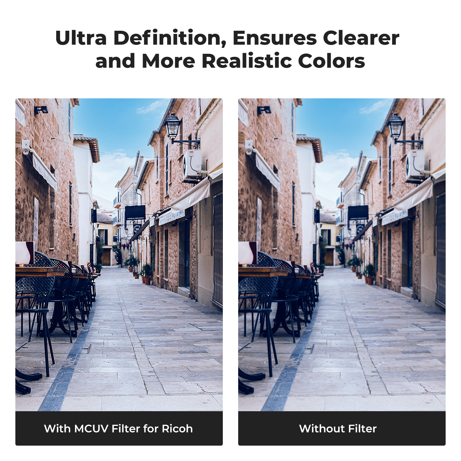 Filter K&F MCUV za fotoaparate Ricoh serije GR zagotavlja izjemno jasne in realistične barve z 28-slojno nanometrsko prevleko ter odlično zaščito pred vodo, prahom in praskami.