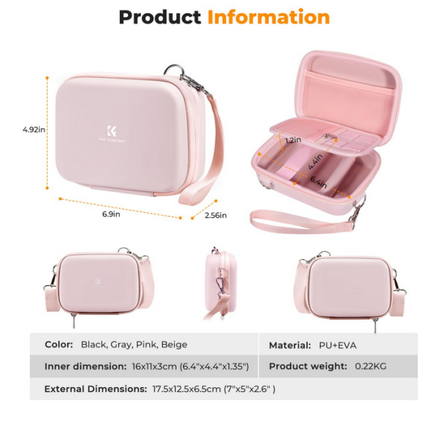 K&F torbica za nošenje 1L Urban Wander 07 (roza): Z vodoodpornim ohišjem EVA za vrhunsko zaščito in prilagodljivo shranjevanje: kompaktna, elegantna in vsestranska torba za nošenje v zanki.