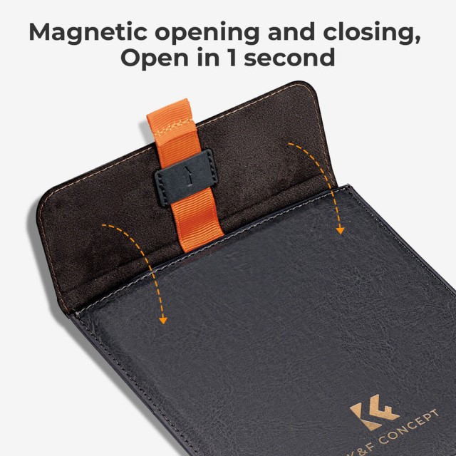 K&F Concept Square Filter Case je tanek in zaščitni etui, zasnovan za varno shranjevanje enega kvadratnega filtra za fotoaparat velikosti do 100 × 100 mm, ki ga ohranja varnega in pripravljenega za uporabo.