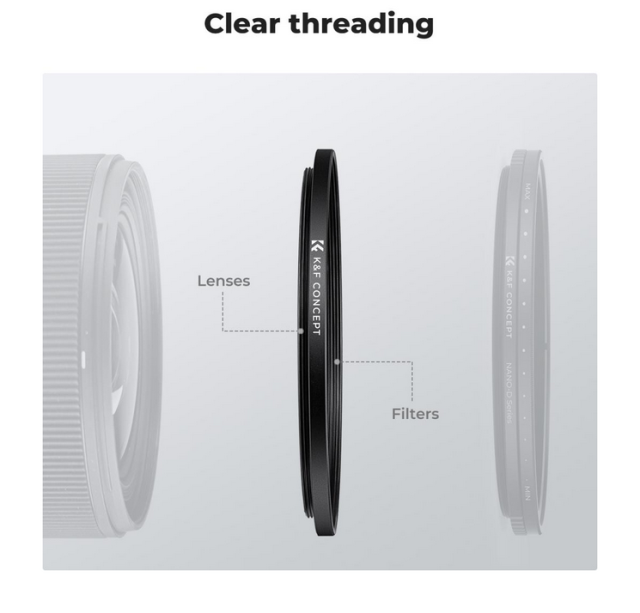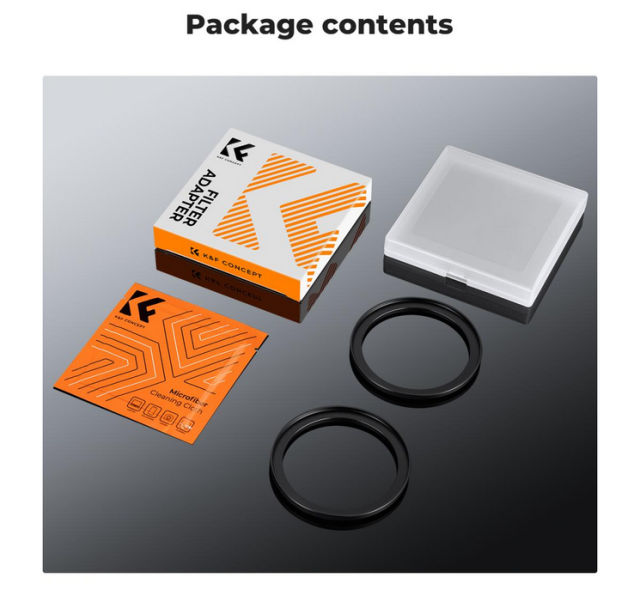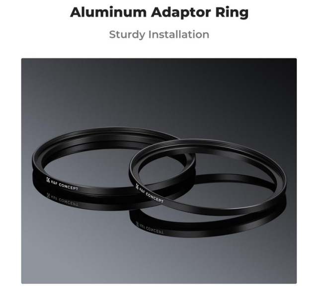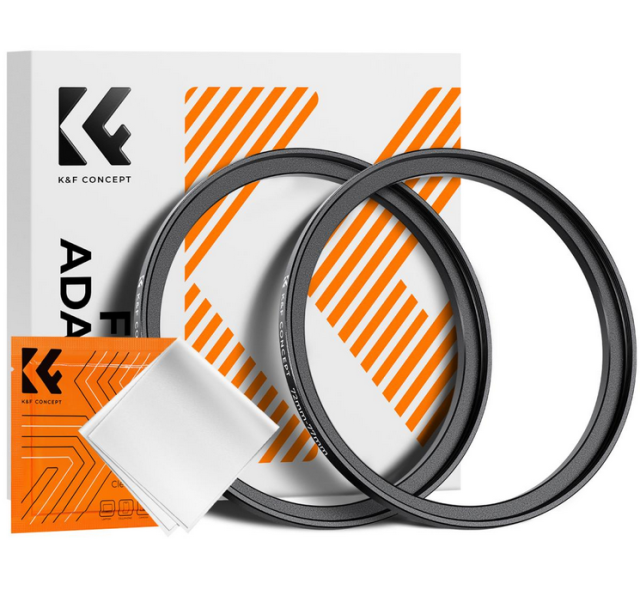 K&F 72-77 mm obroč za povečevanje filtra (2 kosa) omogoča uporabo večjih filtrov na manjših objektivih in je izdelan iz trpežne aluminijeve zlitine letalske kakovosti s peskanim zaključkom. Vključuje vakuumsko zapakirano krpo iz mikrovlaken za čiščenje objektiva.