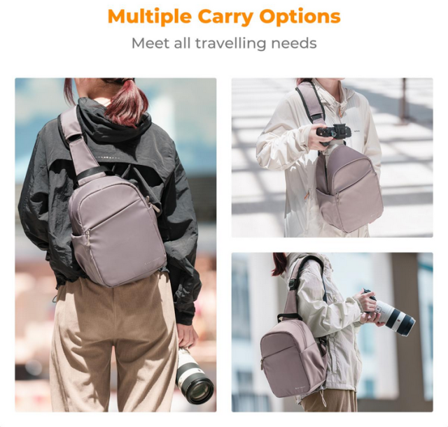 Potovalna torba za čez ramo K&F v temno rožnati barvi je elegantna, lahka in vzdržljiva torba za čez ramo, zasnovana iz vodoodpornih materialov za uporabo v vseh vremenskih razmerah. Popolna je za prenašanje vsakodnevnih potrebščin in fotografske opreme v kompaktni, minimalistični zasnovi.
