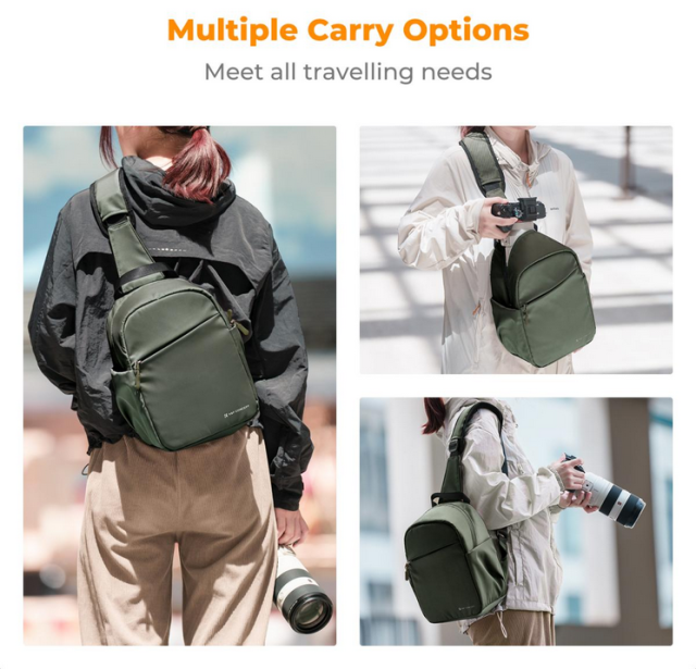 Potovalna torba za ramo K&F v zeleni barvi je lahka, trpežna in vodoodporna torba, zasnovana za vsakodnevno uporabo in fotografske dogodivščine. Je kompaktna in prostorsko varčna ter ponuja minimalistično, a hkrati elegantno rešitev za udobno prenašanje najpomembnejših stvari.