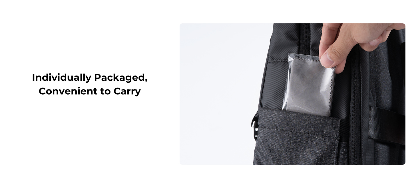 * 10 pakiranj, velika velikost 6x7" (15X18CM), vsak čistilni robček posebej zapakiran v svojo plastično vrečko, dolgoročno varno shranjevanje, enostavno prenašanje.