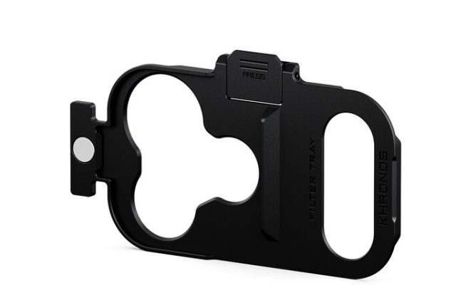 Pladenj se neposredno vstavi v namenski režo na ovitku Khronos in se varno zaskoči na svoje mesto. Vgrajena varnostna zaponka zagotavlja, da se pladenj med uporabo ne more naključno izvleči, niti v dinamičnih snemalnih okoljih, kot so ročni snemalni stoj, avtomobilski nosilci ali gimbal.