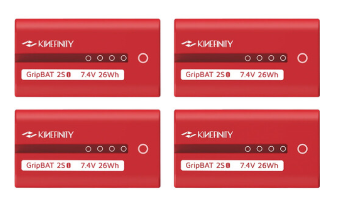 Kinefinity GripBAT 2Si 4-Pack (A941-201-02) vsebuje 4 baterije Sony L-Series 3500 mAh / 26 Wh v rdeči/beli barvi. 75 % večja zmogljivost kot NP-F550, 5 A / 40 W neprekinjeno, 4-LED merilnik, popolna zaščita. Idealna za hibridno ploščo MAVO Edge, monitorje, luči – 90 min polnjenja s PD hibridnim dvojnim polnilnikom.