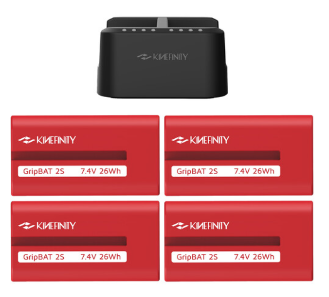 Paket Kinefinity A941-203-02 vsebuje štiri robustne baterije GripBAT 2Si serije L (26 Wh, 7,4 V, 5 A) brez pomnilniškega učinka in s popolno zaščito pred prekomernim polnjenjem, prekomernim praznjenjem in pregrevanjem – vsaka tehta le 104 g in je v značilni rdeče-beli barvi. Priloženi hibridni dvojni polnilnik PD samodejno zazna tip baterije in hkrati polni dve bateriji serije L, dve bateriji BP-U30 (GripBAT 4S) ali po eno od vsake, pri čemer uporablja pravo hitro polnjenje PD (3 A enojno / 2 A dvojno). Napaja ga kateri koli vir USB-C PD z močjo 60 W+ (priporočljiv je adapter Kinefinity 65 W), svetle večbarvne LED-lučke pa prikazujejo stanje v realnem času za vsako reže. S težo le 95 g je polnilnik primeren za potovanja in zagotavlja prihodnost vašega delovnega toka v ekosistemih Sony NP-F in opremi Kinefinity – idealen za EAGLE e-Viewfinder, KineMON, LED-panele ali varnostno kopiranje med delovanjem na podlagi KineKIT-Edge.