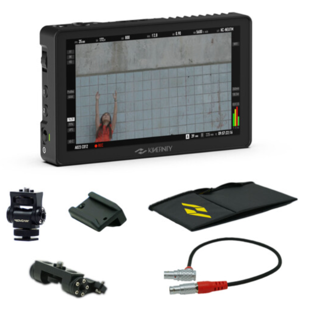 Kinefinity A912-001-01 KineMON 5U II Complete Package omogoča spremljanje na ravni Hollywooda v kompaktni obliki in vsako kamero Kinefinity spremeni v močno orodje, prijazno režiserjem. 5-palčni LCD zaslon z ločljivostjo 1920×1080 ponuja 2000 nitov s 100 % natančnostjo Rec.709, kontrastom 1000:1 in 170° vidnim kotom, ter deluje s polno KineOS firmware za skope, lažne barve, zebre, fokusiranje in 3D LUT. Napajanje in nekomprimirani video potekata prek priloženega 12-palčnega pravokotnega 14-pinskega kabla neposredno iz kamere – zunanje baterije niso potrebne. Takojšnja montaža prek neposrednega vrtljivega nosilca (vgrajeni vijaki), adapterja za hladno stopalo ali zlaganje KineEVF na vrh s pomočjo klina. Štiristranski zaslon za sonce z zaponko odpravlja bleščanje v puščavskem soncu, vendar se za potovanje zloži. S težo le 260 g in ohišjem iz CNC aluminija je ta komplet, pripravljen za snemanje, zlati standard za lastnike-operaterje, DIT-je in fokusirce, ki zahtevajo hitrost in natančnost.