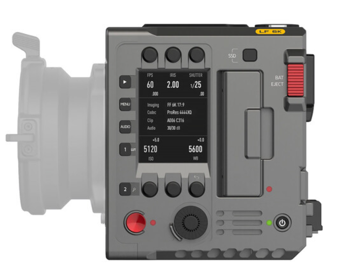 Kinefinity MAVO mark2 6K LF (A010-003-04) je lahka digitalna kinematografska kamera s polnim formatom, ki temelji na 24-megapikselnem senzorju CMOS 3:2 – enakem kot MAVO Edge 6K – in zagotavlja organske, filmsko podobne slike z več kot 14 stopnjami dinamičnega razpona in dvojno izvorno ISO (800/5120). Zajemajo 6K Open Gate do 86 fps v ProRes 4444XQ, s kamero vgrajenim de-squeeze za polnoformatni anamorfni (4:3 ali 6:5). Modularno aluminijasto ohišje (1,37 kg) vključuje PL-mount (z aktivnimi EF- in E-mount možnostmi, ki podpirajo ostrenje, zaslonko, zoom in metapodatke), dvojni lastniški video izhod, 3G-SDI in hibridno V-mount/BP-U baterijsko ploščo. Snemanje na KineMAG Nano SSD-je prek NVMe M.2, s ProRes 422 do 4444XQ in stisnjenim cDNG. Wi-Fi nadzor prek aplikacije Kinefinity, KineLOG3 gama in združljivost s TERRA dodatki ga naredijo idealnega za dokumentarne filme, filme in visokokakovostno produkcijo.