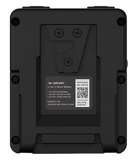 A430-001-01 PD KineBAT 99 na novo opredeljuje kompaktno napajanje V-mount z visokogostotnim litij-ionskim akumulatorjem 95 Wh, ki tehta le 590 g in se prilega v vašo dlan. Prek V-mount priključkov zagotavlja izhodno napetost 14,8 V pri do 10 A neprekinjenega toka, medtem ko dvojni D-Tap priključki in dva USB-C priključka (eden 65 W PD vhod/izhod, eden 30 W izhod) hkrati napajajo kamere, monitorje, luči in prenosne računalnike. Napolnite do 80 % v 2 urah prek katerega koli 65 W+ PD polnilnika (priporočamo Kinefinity 65 W adapter) ali uporabite tradicionalne V-mount/D-Tap polnilnike.