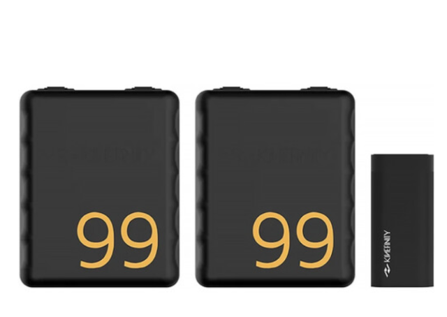 Komplet Kinefinity Dual PD KineBAT 99 (A943-001-01) vsebuje 2 bateriji V-mount z zmogljivostjo 95 Wh + 65 W PD stenski polnilnik. Vsaka baterija KineBAT 99, velika kot dlani, omogoča približno 2 uri delovanja popolnoma opremljenega MAVO Edge 8K, se v 2 urah napolni do 80 % prek USB-C in napaja dodatno opremo prek 2× D-Tap + 2× PD USB-C. Najboljši paket za potovanja/gimbal.