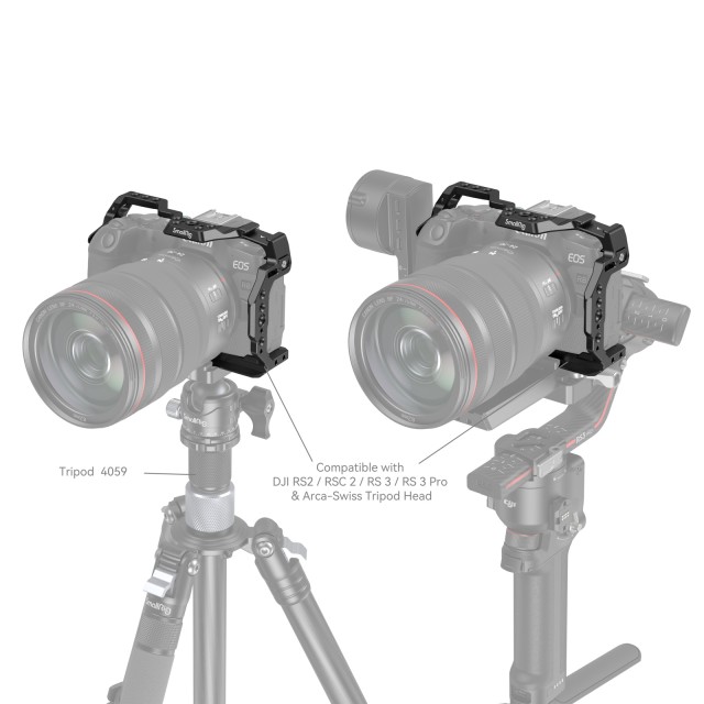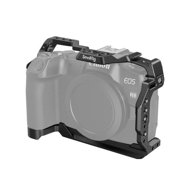 Kletka SmallRig za Canon EOS R8 4212 je namenjena zaščiti fotoaparata in pritrditvi dodatne opreme. Kletka se pritrdi z enim spodnjim vijakom 1/4"-20 in dvema stranskima zaklepnima adapterjema, ima gumijaste blazinice za preprečevanje prask ter omogoča popoln dostop do gumbov, rež za kartice, preklopnega zaslona in prostora za baterijo. Pritrdišča za dodatno opremo vključujejo luknje z navojem 1/4"-20, luknje z navojem 3/8"-16 in luknje za pozicioniranje ARRI 3/8"-16, ki podpirajo zgornji ročaj 3765, stranski ročaj 2093C, nosilec za monitor 2903B in magično roko 3875; zgornja hladna podloga pritrjuje mikrofon 3468 in video luč LED 3286B; leva tirnica NATO pa ustreza vrtljivemu stranskemu ročaju 3260 in 3813.