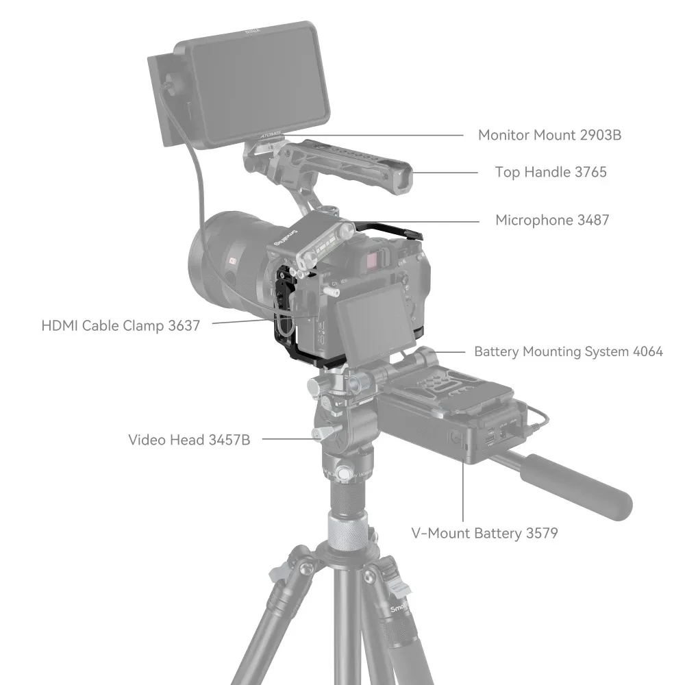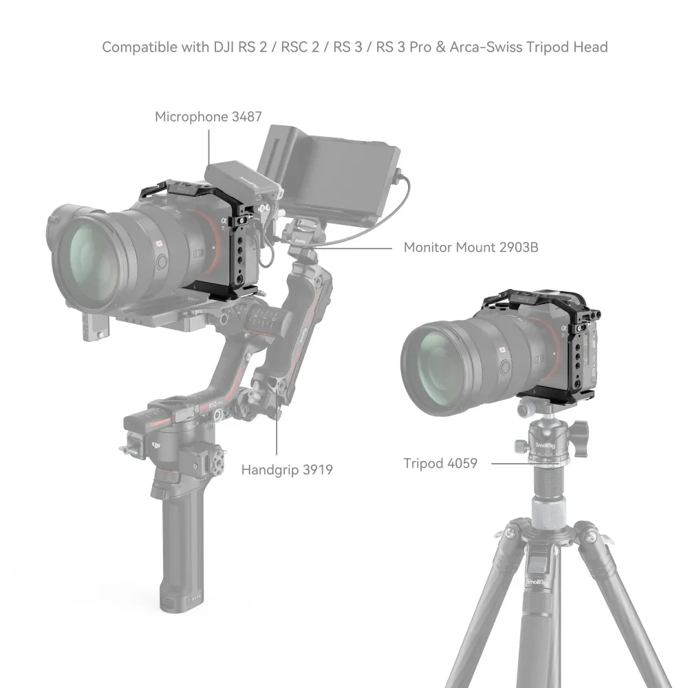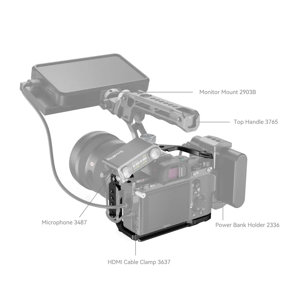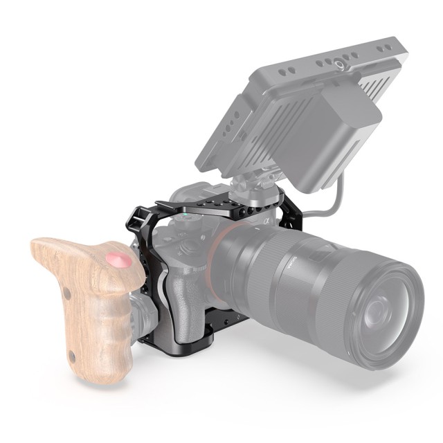 Kletka SmallRig A7RIII 2087 je zasnovana izključno za Sony A7RIII/A7M3/A7III. Ponuja veliko dodatnih možnosti pritrditve in omogoča, da izkoristite največji potencial fotoaparata in ga prilagodite potrebam snemalcev med snemanjem. Na zgornji desni strani ima hladno podstavek. Pritrdite jo lahko na mikrofon, roko Magic Arm 1497/1498/2070 in nato še na monitor. Točke za pozicioniranje Arri na zgornji strani so združljive z Arrijevimi pozicionirnimi zatiči, prav tako tudi Magic Arm z anti-rotacijskim adapterjem Magic Arm 2026 za monitor ali brezžični oddajnik slike.