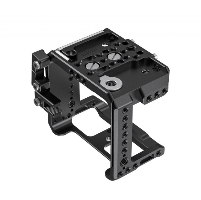Kletka SmallRig za Z CAM E2C CVZ2372 je zasnovana tako, da zagotavlja zaščito in pritrdilne navoje za dodatke, kot so monitor, mikrofon in ročaji. Kletka se na kamero pritrdi s tremi 1/4" vijaki, enim na vrhu in dvema na dnu, kar preprečuje zvijanje. Ima več lukenj 1/4"-20 in Arri 3/8" za namestitev dodatkov, kot so Cold Shoe 2260, zgornji ročaj 2165 in držalo za monitor 2294. Na obeh straneh se integrira z ročajem Nato 2187 in čarobno roko 2116. Poleg tega ima na vrhu luknje za trak za prenašanje. Na dnu sta vgrajena izvijač s plosko glavo in šestilo za hitro namestitev. Odvisno od vaših potreb je na voljo podpora za adapter za objektiv ter objemka za kabla HDMI in USB.