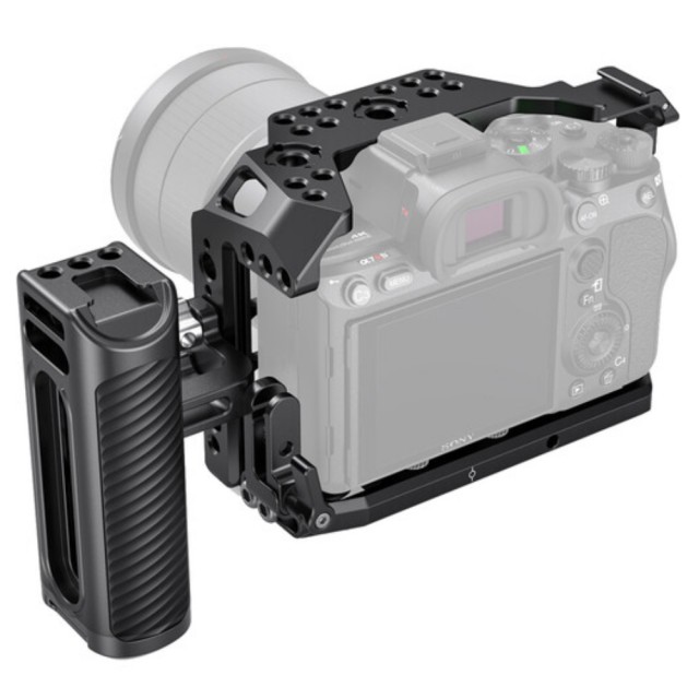 S tem kompletom polne kletke s stranskim ročajem podjetja SmallRig dodajte zaščito in različno dodatno opremo svojemu brezzrcalnemu fotoaparatu Sony a7R IV. Komplet vključuje celotno kletko za fotoaparat, stranski ročaj z vijaki 1/4"-20 in objemko za kabel HDMI.