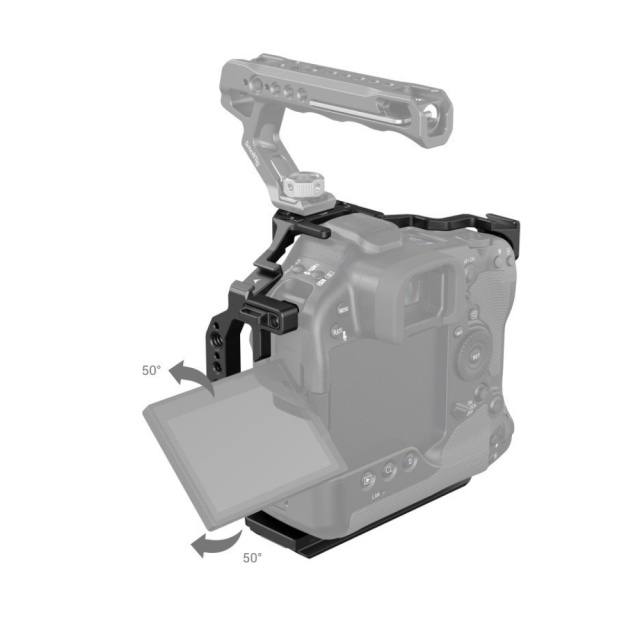 Kletka SmallRig za fotoaparat Canon EOS R3 3884 je zasnovana tako, da zagotavlja zaščito in več pritrdilnih točk. Fotoaparat pritrdi z enim vijakom 1/4''-20 na dnu in dvema stranskima zaklepnima adapterjema na obeh straneh; kletka je opremljena s silikonskimi blazinicami, ki preprečujejo praske in ohranjajo dostop do gumbov, rež za kartice, prostora za baterijo…