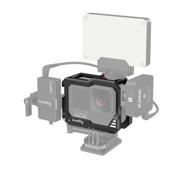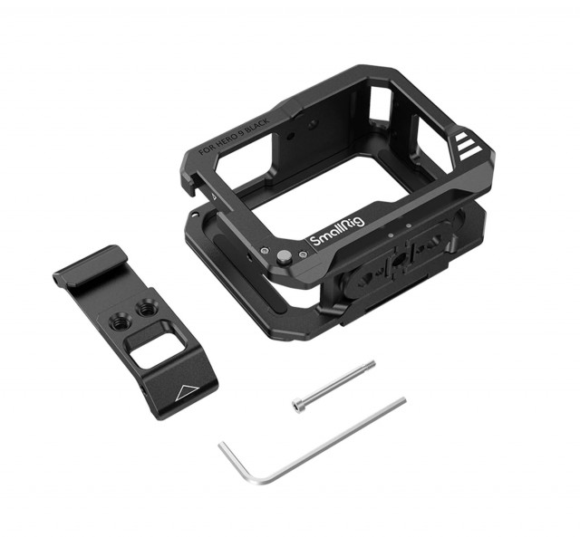 Kletka SmallRig 3084 je posebej zasnovana za modele GoPro Hero 12, 11, 10 in 9 ter zagotavlja zanesljivo zaščito in izboljšano funkcionalnost vaše akcijske kamere. Ta kletka ima na vrhu in desni strani več nastavkov Cold Shoe za pritrditev dodatne opreme, kot so mikrofoni in luči LED. Vključuje tudi zložljiv nosilec, ki je združljiv z originalno osnovno ploščo GoPro, in luknjo z navojem 1/4"-20 za pritrditev na stativ.
