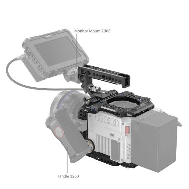 Komplet SmallRig Cage Kit za RED V-RAPTOR 3696 je zasnovan za namestitev dodatne opreme in zaščito kamere. Zaradi modularne zasnove zgornja ali spodnja plošča delujeta neodvisno in zagotavljata lahkotno rešitev za snemanje videoposnetkov. Njeno zgornjo tirnico NATO je mogoče odstraniti in tako omogočiti namestitev originalnega 7-palčnega monitorja LCD DSMC3™…
