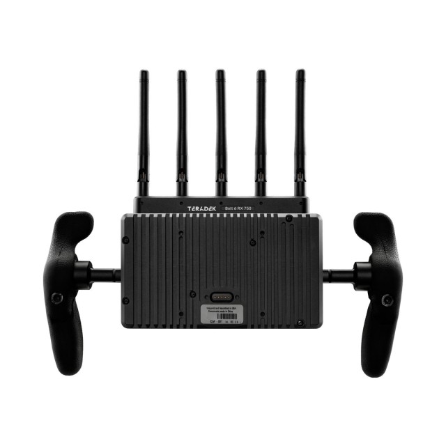 Monitor s kamero SmallHD Ultra 5 in sprejemnikom Teradek Bolt 6 RX 750 (V-Mount). Sprejemnik Bolt 4K TX podpira zanesljiv prenos signalov HDR do ločljivosti 4Kp30 (HDMI) z minimalno zakasnitvijo (>0,001 s).