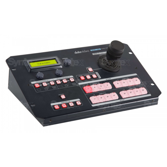 RMC-185 je cenovno ugoden fizični krmilnik, zasnovan posebej za krmiljenje večkamernega procesorja serije KMU 4K. RMC-185 je prek vmesnika RS-422 povezan s KMU-100. Ta namenski krmilnik operaterjem omogoča, da z uporabo krmilne palice izvajajo gladke premike povečave in pomika/nagibanja. Na voljo so štiri prednastavitve, ki ohranjajo merilo, položaj, pot gibanja in hitrost vseh štirih posameznih izhodov 3 Gb/s za vsak kanal. Gumbi omogočajo zagon/zaustavitev/ponastavitev gibanja z vnaprej določeno hitrostjo za vsak posamezni izhod.