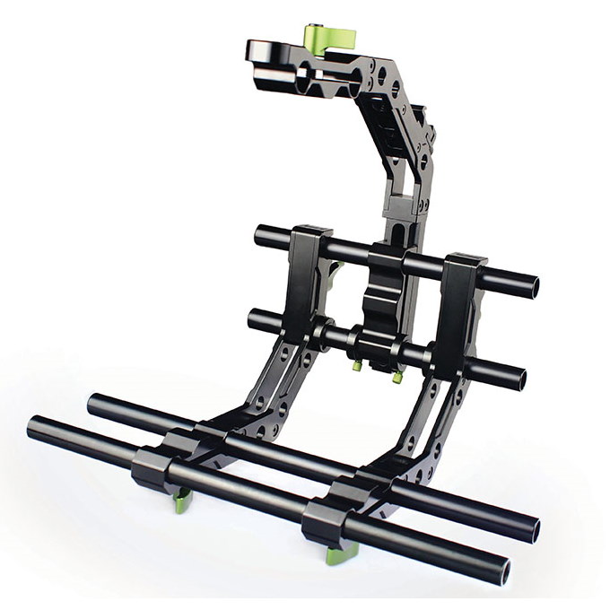 LanParte C-Arm V2 v obliki črke C je mogoče pritrditi na katero koli 15-milimetrsko tirnico, npr. za enostavno pritrditev zgornjega ročaja (ni priložen), ali pritrditi na stranico ramenskega naslona/plošče za kamero LanParte VMS-01. Poleg tega je nosilna ročica C-Arm V2 tudi večja od različice C-Arm CA-01, zato je primerna za večje fotoaparate.