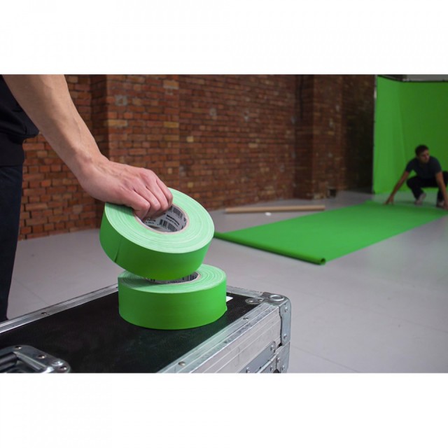 Manfrotto Gaffer Tape 50 mm x 50 m Chroma Key Green je idealen za pritrditev rešitev za ozadje na tla in za prekrivanje spojev za brezhibno ključanje pri uporabi Manfrotto vinilnih rešitev za tla.
