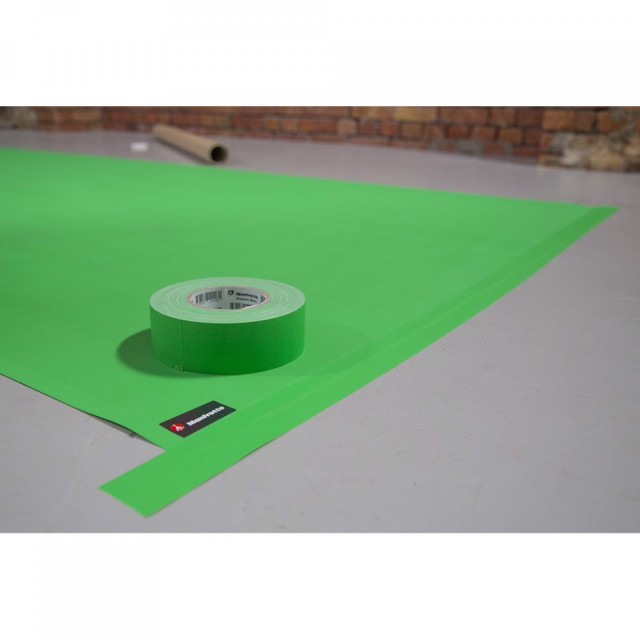 Manfrotto Gaffer Tape 50 mm x 50 m Chroma Key Green je idealen za pritrditev ozadja na tla in prekrivanje spojev za brezhibno ključanje pri uporabi Manfrotto vinilnih talnih rešitev.