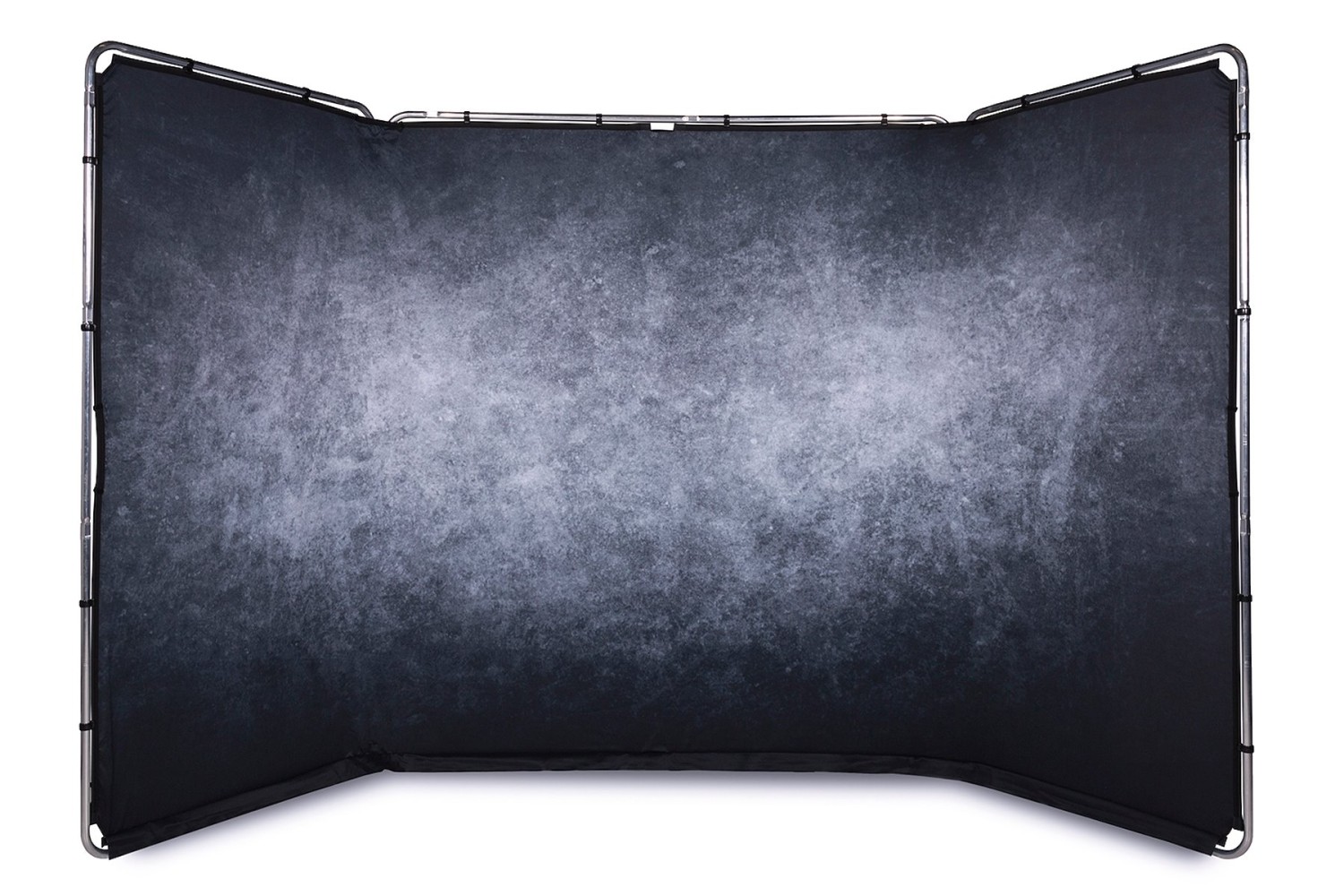 Samonosná konstrukce Panoramic Background s pozadím barvy Granit. Látka Granit nabízí unikátní efekt kamenné textury s celou řadou šedých tónů a tmavou vinětací směrem ke kraji. Součástí jsou silné a snadno připevnitelné spony, které drží jednotlivé části rámu při sobě a zajišťují rovné vypnutí textilie. Pro tento produkt jsou dostupné i další varianty barev jako například černá, bílá, Chroma Key Green a Blue, nebo Limestone (Vápenec). Limestone nabízí jemnější škálu šedých odstínů. Na rozdíl od jiných systémů pozadí, výhodou Panoramic Background je například jeho skladnost. V transportním rozloženém stavu dosahuje velikosti 100x30x35 cm v přepravním pouzdře. Díky samonosné konstrukci navíc není zapotřebí řešit připevnění na dané fotografické lokaci. V plně složeném stavu dosahuje pozadí rozměrů 4 x 2,3 m a jeho složení zabere jen několik málo minut.
