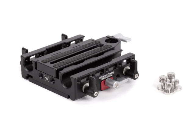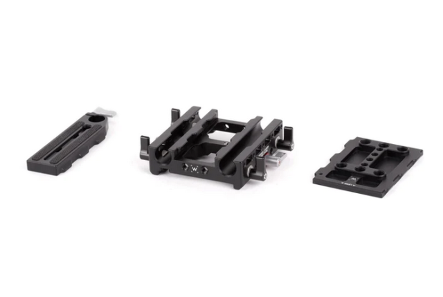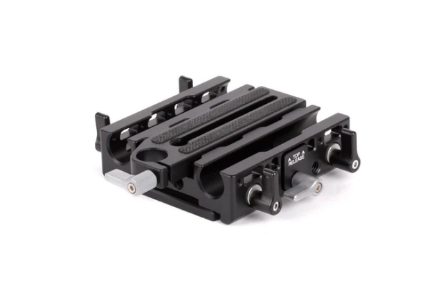 Unified Base Plate (Sony FX9, FS7, FS7mkII, Canon C100mkII, C300mkII, C100, C300, C500) je osnovna plošča s hitrim sproščanjem, ki zagotavlja lahek 15 mm drog na pravilni višini objektiva.Drogovi premera 15 mm segajo od spredaj proti zadnjemu delu in imajo na vsaki strani dva vijaka za zaklepanje s palcem. Osnovna plošča se hitro sprosti na dva načina, kar uporabniku omogoča, da lahke 15-milimetrske palice vzame ali pusti.