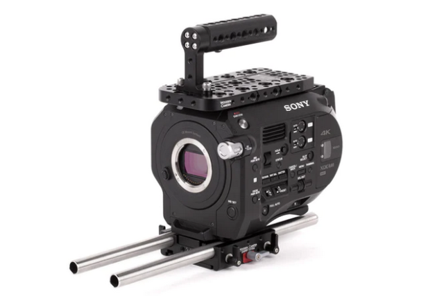 Če želite odstraniti fotoaparat in obdržati 15 mm lahke palice, odstranite vijak s palcem na desni strani, potisnite fotoaparat za kratek čas nazaj in ga dvignite naravnost navzgor. Golobji rep, pritrjen na spodnji del fotoaparata, je oblikovan kot švicarski standard ARCA, ki ga je mogoče povezati s številnimi izdelki drugih proizvajalcev. Poleg tega so na dnu luknje z navojem 1/4-20 za morebitno pritrditev na kardanske stabilizatorje ali stativne plošče. Na tem zgornjem vratu je tudi navpična 15-milimetrska luknja za palico, ki se lahko uporabi za podporo noge adapterja za objektiv neposredno pred ohišjem fotoaparata. Primer je Sony FS7, ki uporablja Metabonesov adapter Canon EF. Zgornji golobji rep bi namestili z navpično 15-milimetrsko luknjo za palico naprej in v podporno nogo Metabones bi namestili in privili komplet za podporo adapterja objektiva Unified Lens Adapter Support Kit.